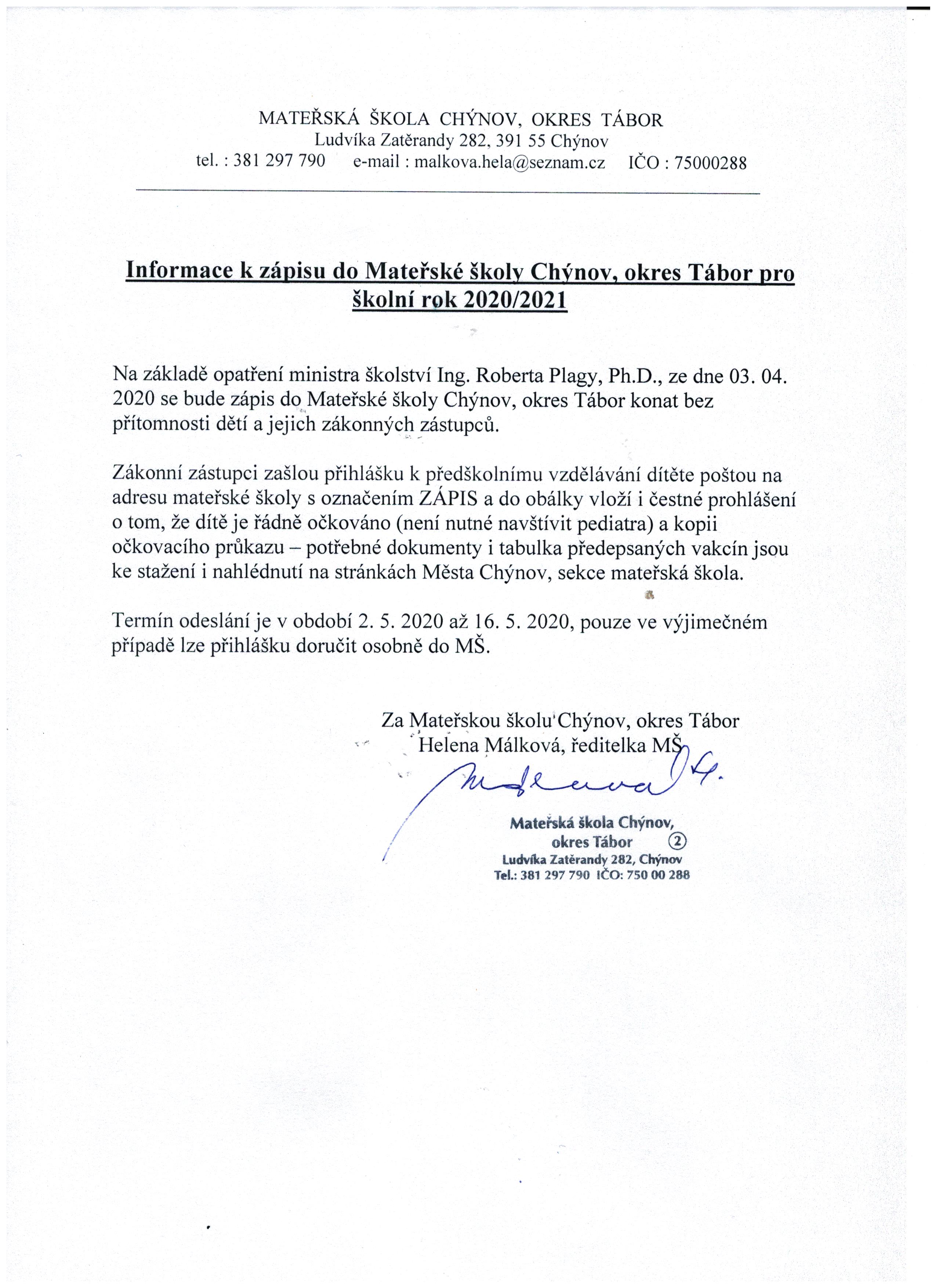 MŠ - informace k zápisu Přílohy k článku Jméno souboru Popis Velikost ms-informace-k-zapisu.jpeg 809.7 Kb Vyvěšení: 14.4.2020