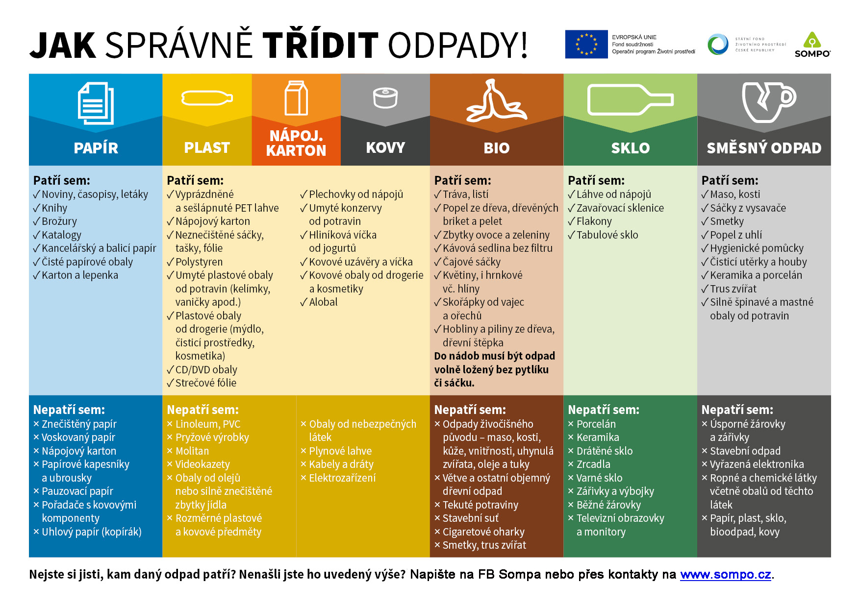 Díky projektu podpořenému z Operačního fondu Životní prostředí, který realizuje Dobrovolný svazek obcí SOMPO, získá město Černovice pro své občany nádoby na tříděné odpady. Cílem tohoto projektu je snížit množství směsného komunálního odpadu a zvýšit množství recyklovatelných odpadů jako je papír, plast, nebo bioodpad. Tyto druhy odpadů mohou být surovinou pro výrobu dalších výrobků a tedy nekončit bez využití na skládkách nebo spalovnách odpadů.